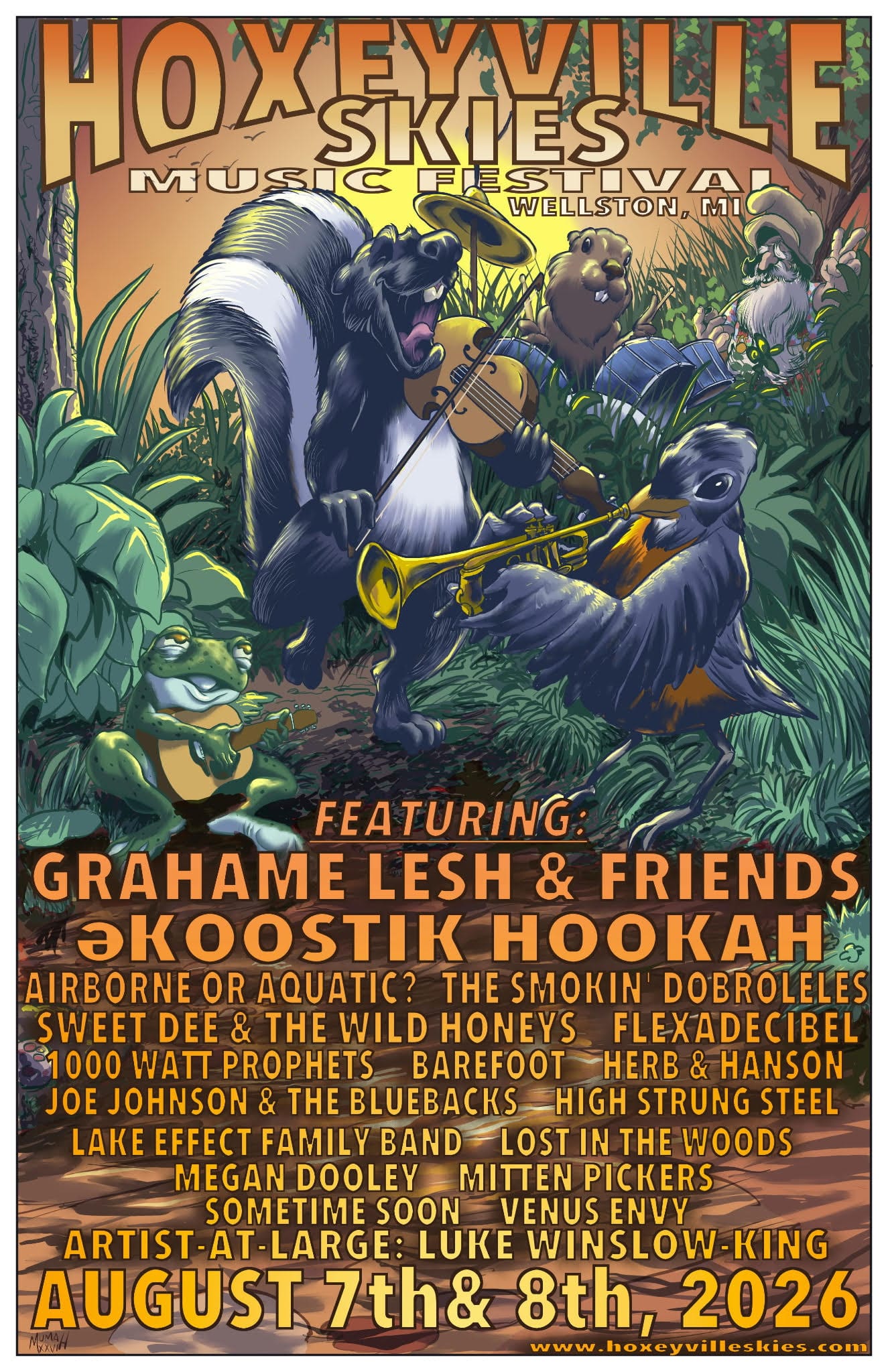 Camp Skunk Productions LLC, formed by devoted Hoxeyville attendees with support from Cadillac’s Gopherwood Concerts, will host the first-year celebration that will also feature Ohio jam band Ekoostik Hookah, along with a bevy of Michigan favorites.