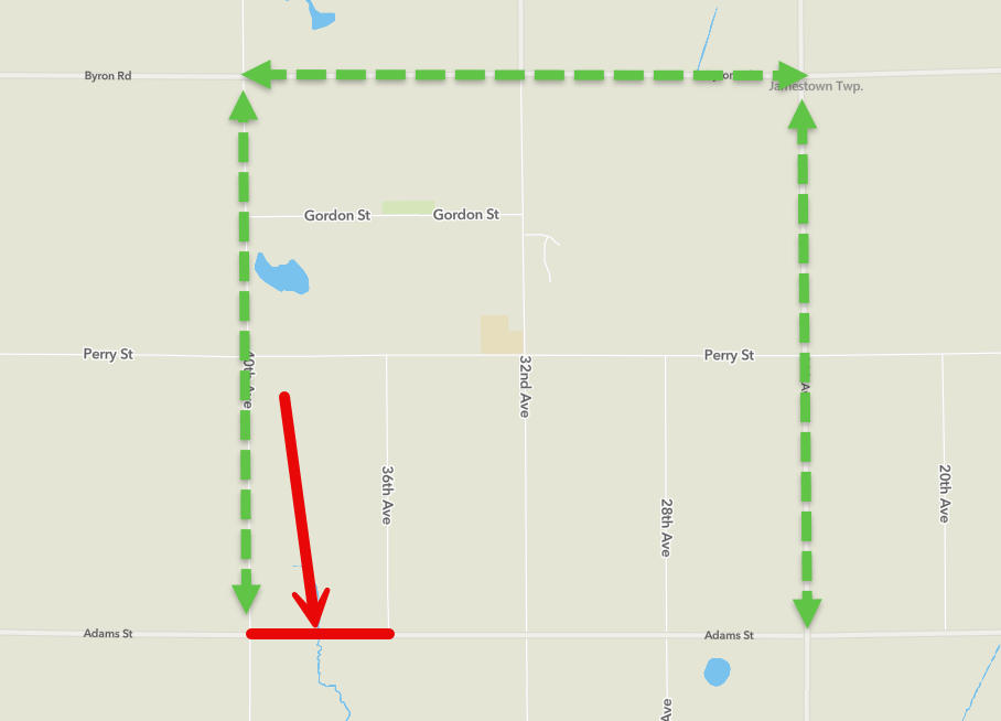 WHERE: Adams Street between 40th Avenue and 36th Avenue, Jamestown Twp.