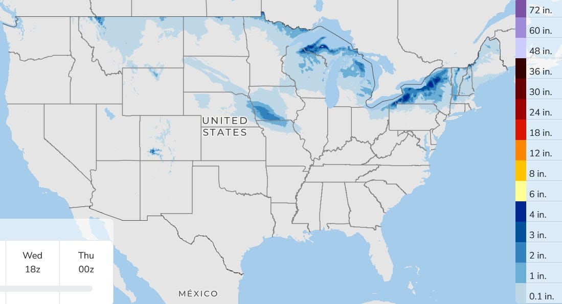 Here’s the total snowfall for the next three days. Look for another 1-3 inches in parts of Upper Michigan and an inch in northeast Lower Michigan.