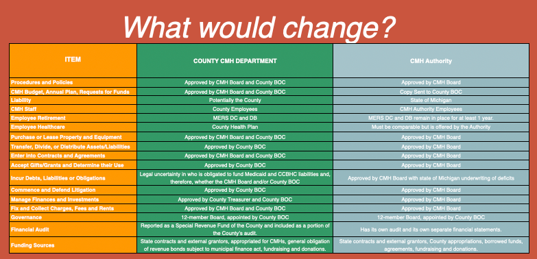 That led to a failed vote to go into closed session and a presentation on what it would look like to convert to a CMH authority and some of the justifications as to why.