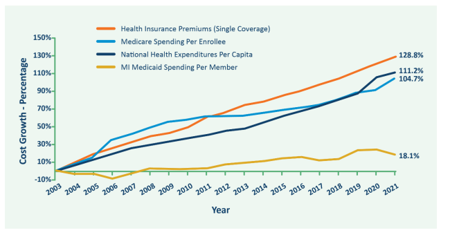 In 1998, Michigan received federal waivers to move to a managed care model, where funding shifted from "fee-for-service" to capitation, a fixed monthly fee per Medicaid enrollee.