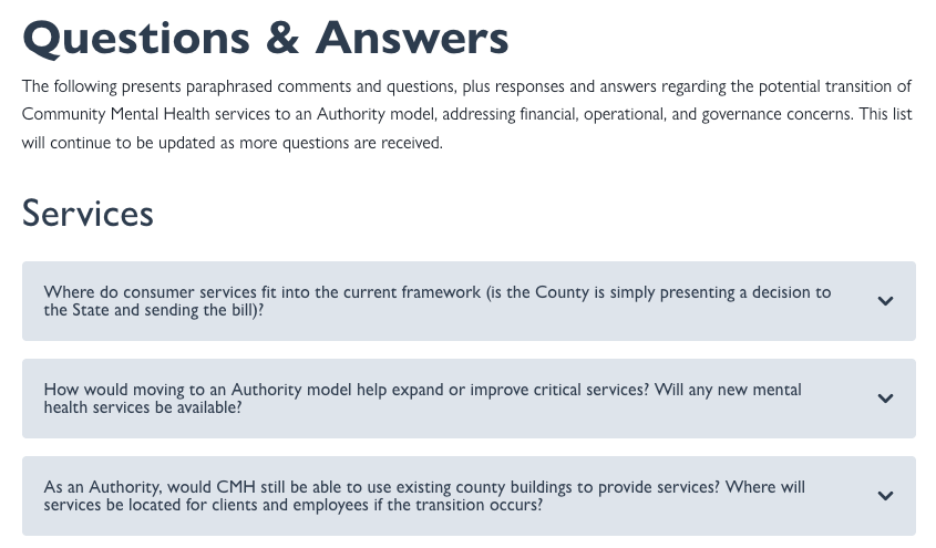 That happened in Washtenaw County, which originally transitioned to an authority in 2000, but the county commission voted to bring it back in-house in 2015, citing financial inefficiencies during a period of state-level funding volatility after then-Gov. Rick Snyder created a new way for how funds flowed into counties.