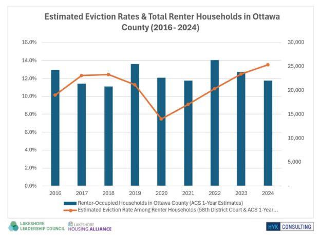 Eviction rates have been on the rise in Ottawa County since 2020, with the filing rate steadily increasing between 2022 and 2024 from 10.8% to 13.5% of all renter households, according to Good Samaritan.