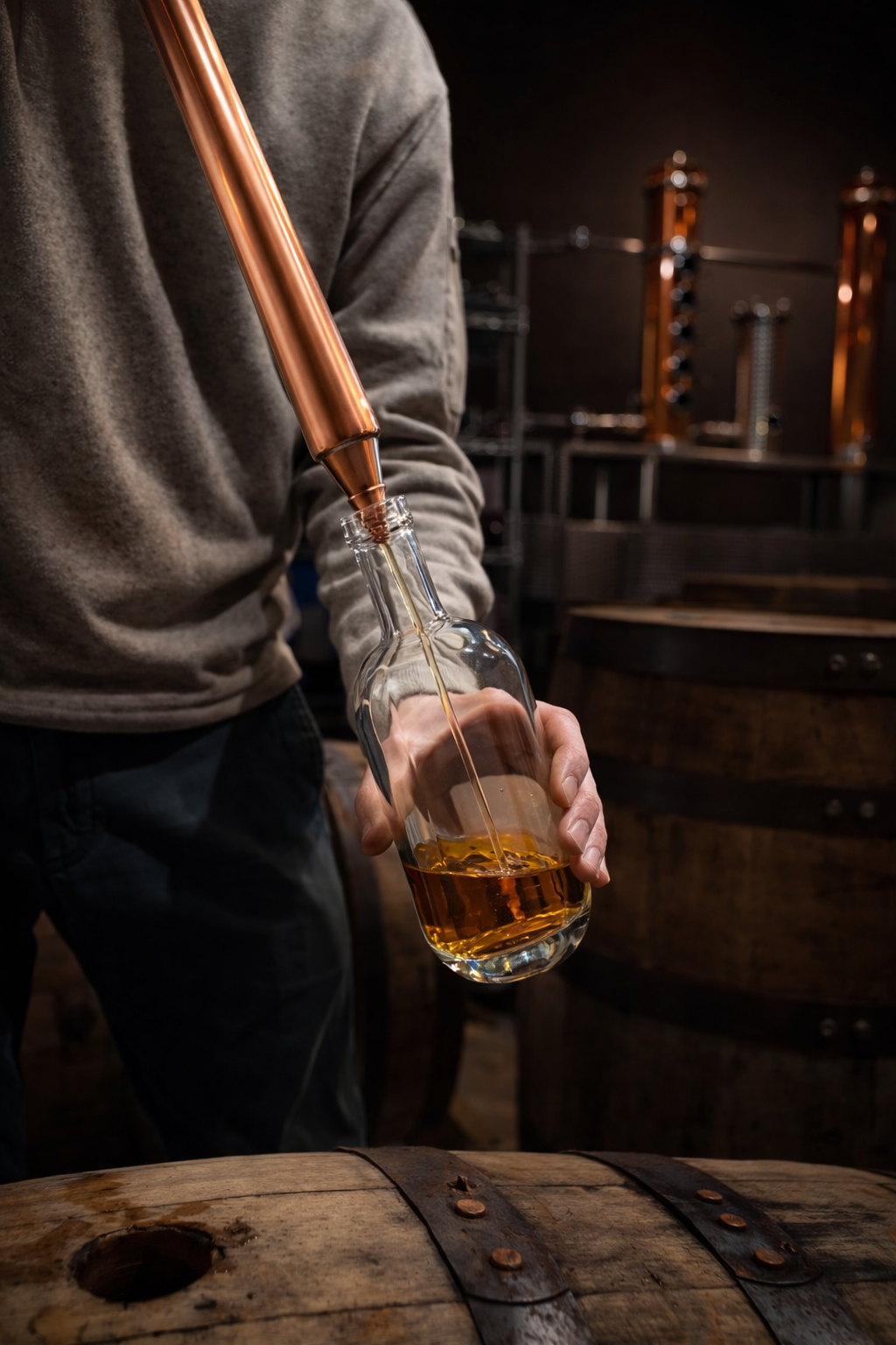 Drawing inspiration from the bourbon culture of Bardstown, Kentucky, the distillery is introducing a "barrel-to-glass" service. A thief is a traditional copper tool used to draw unfiltered spirits directly from the barrel.