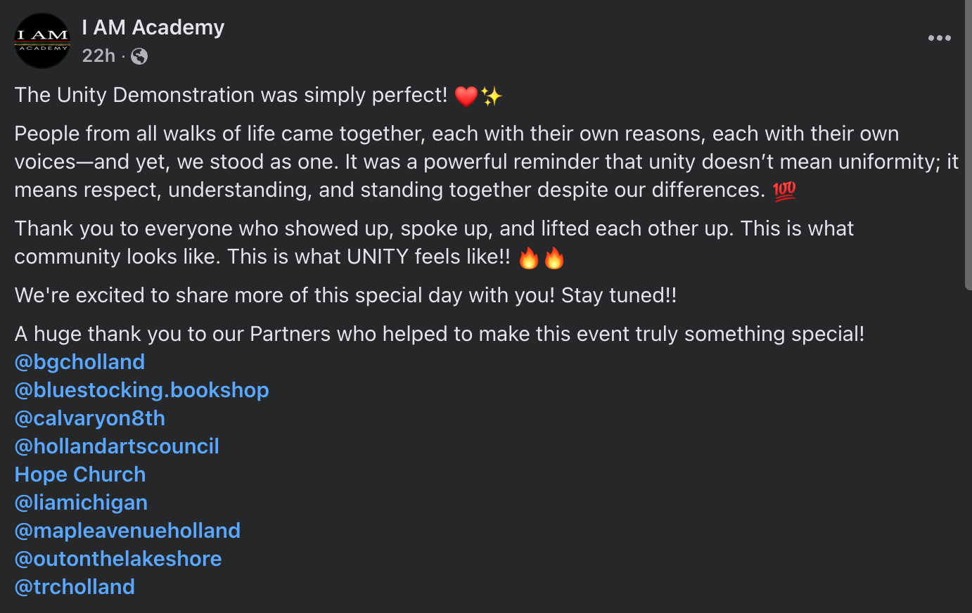 I AM Academy, a nonprofit advocacy group focused on empowering black and multiracial youths, organized the event along with Indivisible Lakeshore.