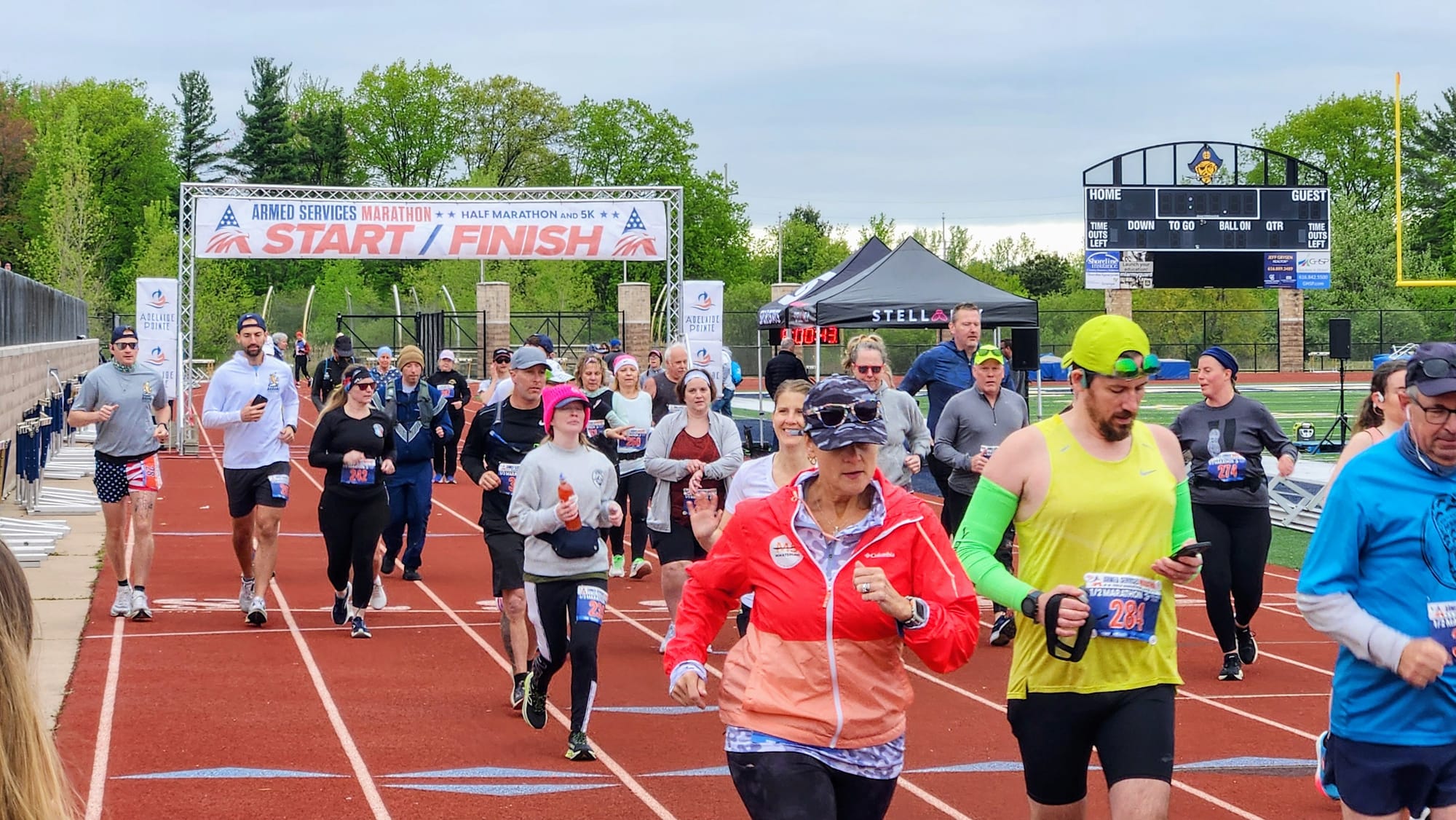 The event also collaborated with the military branches, each of which set up exhibits near the stadium entrance. The branches, along with volunteers and members of Folds of Honor, set up aid stations along the track to help runners with drinks and snacks.