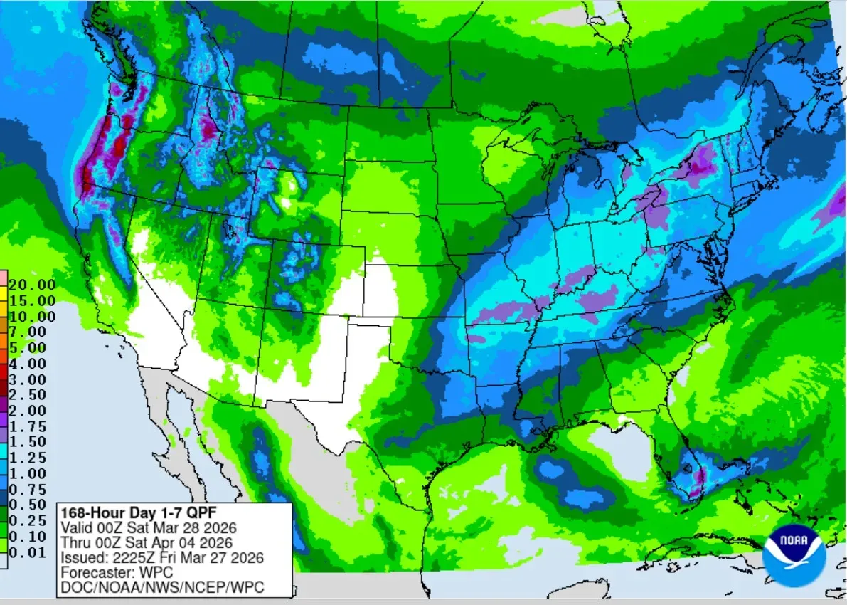 There could also be some significant rain on Monday night, March 30, and again on Thursday night.