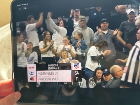 He noted her unwavering commitment, recalling a time when the family boarded a bus for the state finals at the Breslin Center when their second child was only 2 weeks old.
