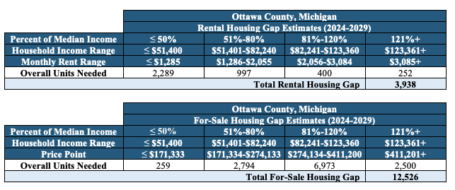 The report found that Ottawa County has a shortage of available inventory, a prevalence of substandard housing, rapidly increasing rents and high home prices, and rapid household growth.