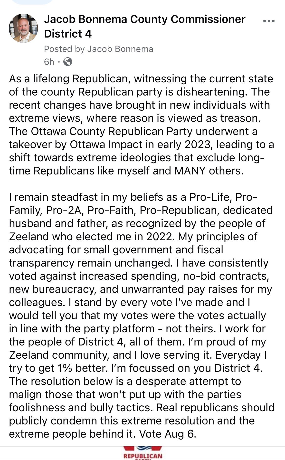 “The Conservative Ottawa group, and I know many of the people in it, are what the Republican Party of Ottawa County has been: a somewhat solid, somewhat boring, highly effective organization that has elected Republicans that have really run this county,” he said.