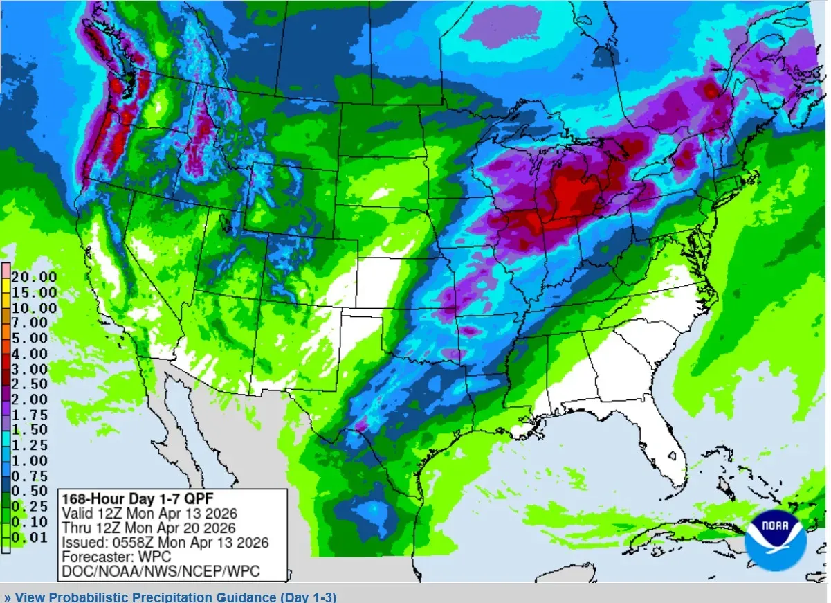 The Weather Prediction Center is forecasting the heaviest rain to be in Lower Michigan, northeast Illinois and northwest Indiana. The bright red is 2-3 inches. That’s on top of already wet ground, which would certainly produce more flooding. Fortunately, most rivers (including the Grand River in Kent County) have crested and have been falling over the last 24 hours.