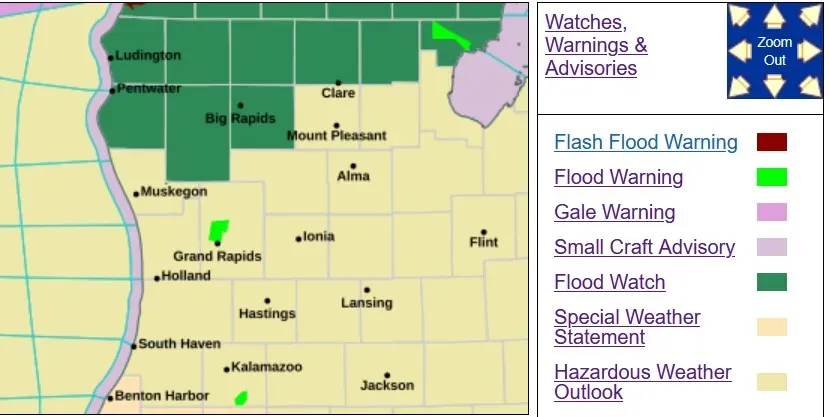 There’s a Flood Watch in effect for Oceana, Newaygo and Mecosta Counties to the north.