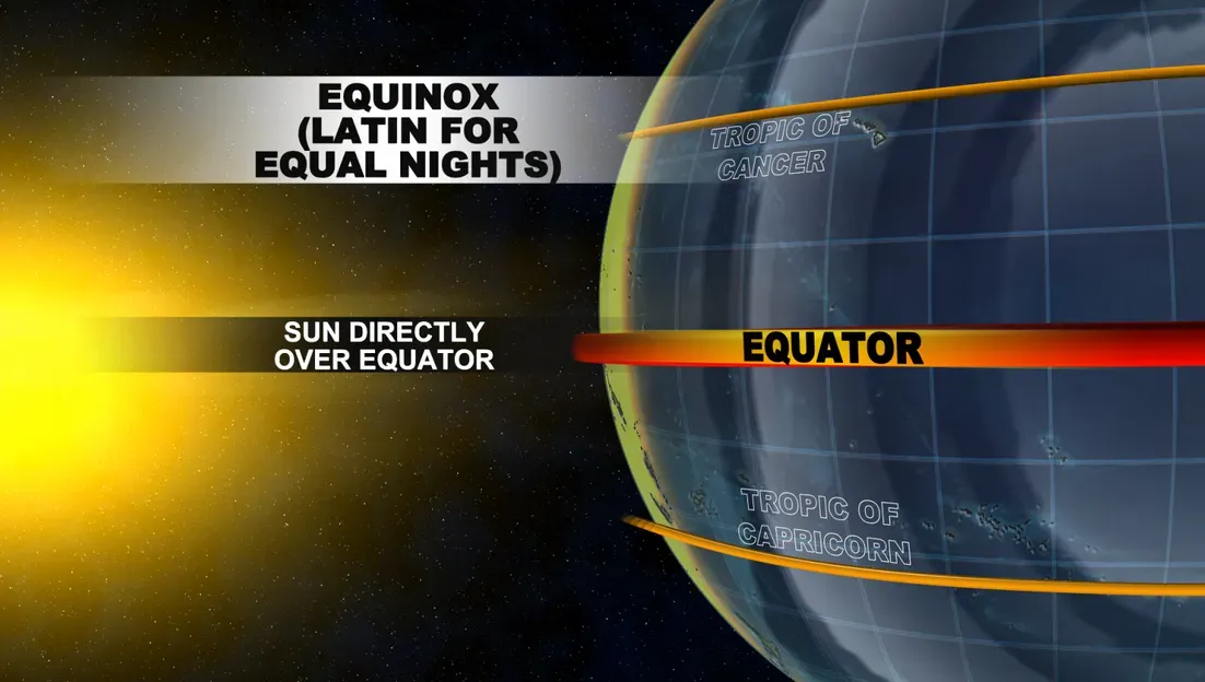 “Equinox” means “equal night” and on the vernal and autumnal equinoxes, there is equal day and night over the entire Earth. Now, if you see the sunrise and sunset for today (7:47 a.m. and 7:54 p.m. for Grand Rapids), you’ll note that the day is not exactly 12 hours. It’s 12 hours and 7 minutes.