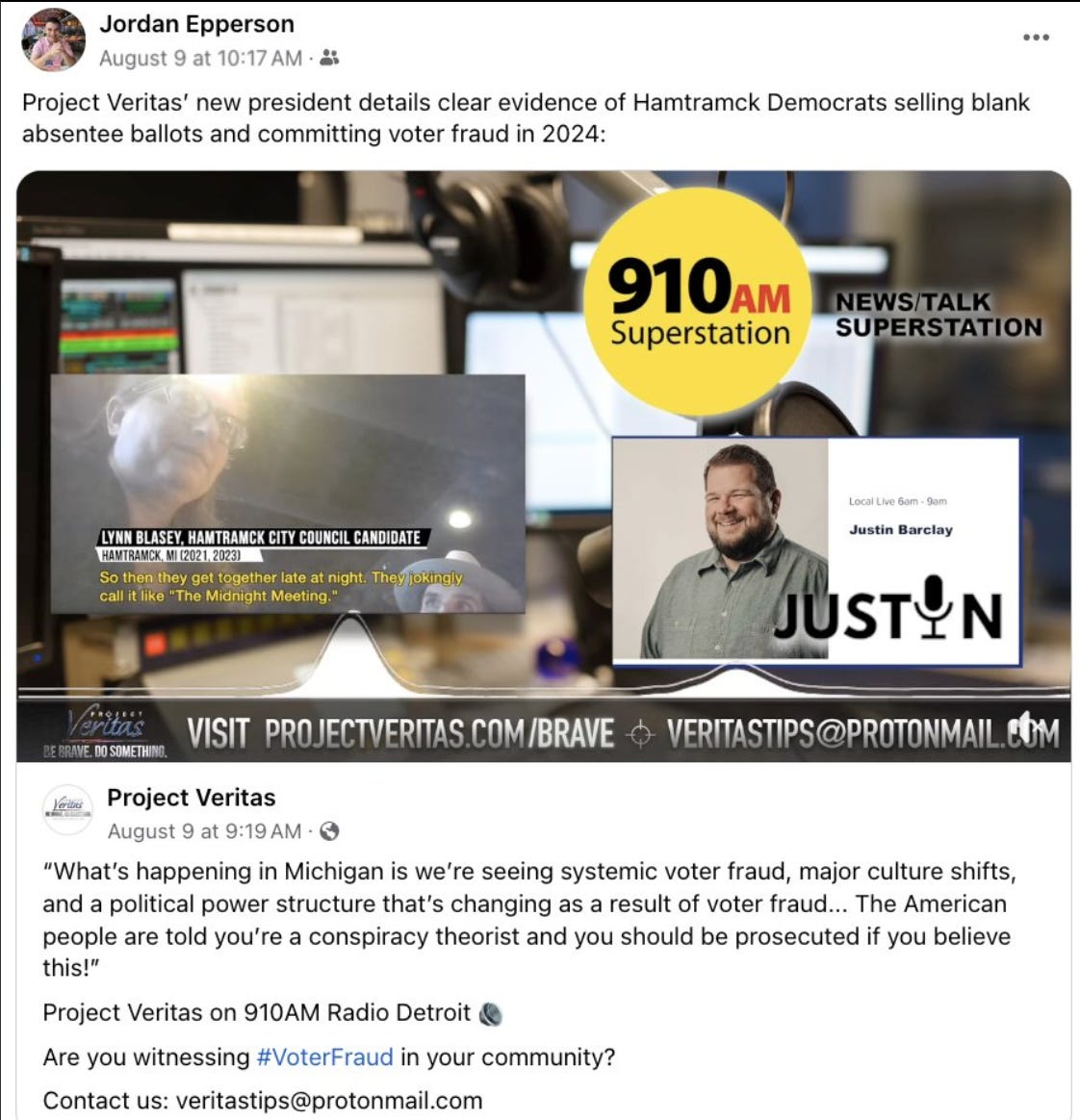 He has voiced his support for Project Veritas, posting on social media when Wetmore has given interviews representing the group.